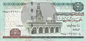 All Egyptian banknotes are bilingual, with Arabic texts and Eastern Arabic numerals on the obverse, and English texts and Western Arabic numerals on the reverse. Obverse designs tend to feature an Islamic building with reverse designs featuring Ancient Egyptian motifs (buildings, statues and inscriptions). During December 2006, it was mentioned in articles in Al Ahram and Al Akhbar newspapers that there were plans to introduce £E200 and £E500 notes. As of 2019, there are £E200 notes circulating but there are still no plans for printing £E500 notes.[11] Starting from 2011 the 25, 50 piastres and £E1 banknotes have been phased out and replaced by more extensive use of coins. As of June 2016 the National Bank of Egypt reintroduced the £E1 banknote into circulation[12] as well as the 25 and 50 piastres notes in response to a shortage of small change.