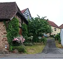 Close to where the river Schwarzbach merges with the smaller Blies, foundations of a Salian[22] castle[23] were uncovered that may be dated to the 10th or 11th century CE.[24] In 1928[8] excavations under the leadership of the conservator Karl Klein brought to light the foundations of a rectangular, tripartite tower house.