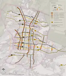 ![]() Current state of ejes viales, showing incomplete and partially complete sections. |