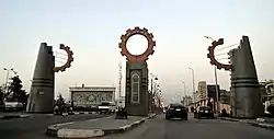 El Mahalla El Kubra consists of two words: El Mahalla in Arabic means "district" or "encampment", El Kubra means "great". Hence the title collectively means "The Great Encampment".[1] It's a rough translation of a Coptic Egyptian name ϯϣⲁⲓⲣⲓ "cohabitation" or "residence",[2] but the second part of it – "El Kubra" may come from the Hellenistic name of the same settlement – "Theodosiou Nixis" (Coptic: ⲑⲉⲟⲇⲱⲥⲓⲟⲩ ⲛⲓⲝⲓⲥ, where ⲛⲓⲝⲓⲥ is most likely a Greek transcription of Coptic ⲛⲓϣϯ – "great").[3]