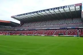 In 1968 four floodlights were installed at El Molinón and the first night match was played against Mestalla.[7] On 11 April 1969, due to the financial trouble of Real Sporting, the stadium was formally sold to the city Town Hall by 30 million pesetas.[8] On 30 November 1969, El Molinón became the first all-covered stadium in Spain and on 28 January 1970, the first match to be televised in Spain was played at El Molinón. Real Sporting defeated Osasuna by 3–0. The club also played all of its UEFA Cup home-matches in this stadium, including the win against A.C. Milan by 1–0 on 30 September 1987.