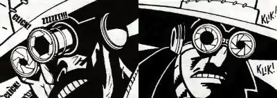 The most distinctive parts of El Observador's costume are his brown trench coat and wide-brimmed hat. Concealed within his trench coat are several throwing knives and other bladed weapons. His weapons of choice include two long swords which he uses to mercilessly hack away at his opponents. The objects that appear as goggles on his head are in fact highly advanced photo lenses attached to his skull. The lenses take rapid images that are sent directly to his brain, which he quickly interprets to predict his opponent's next move.