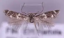 The wingspan is 6–8 millimetres (0.24–0.31 in). Adults are on wing in June.[2]