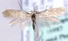 The wingspan is 10–12 millimetres (0.39–0.47 in).[2] Adults are on wing from the first half of June to the first half of August.