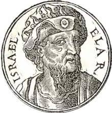 Elah (Hebrew: אֵלָה ’Ēlā; Greek: Ἠλά; Latin: Ela) was the fourth king of Israel, the son and successor of Baasha. William F. Albright has dated his reign to 877–876 BCE, while E. R. Thiele offers the dates 886–885 BCE.[1] Some accounts suggest Zimri could have been a distant relative of Elah.