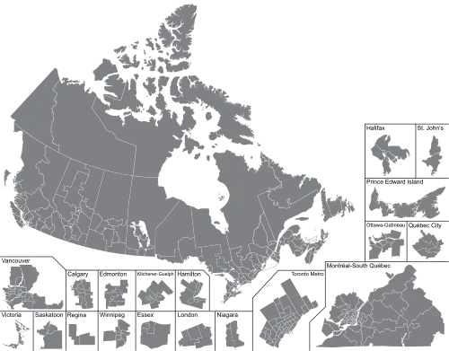 {{cite web}}: CS1 maint: location (link) - "Federal electoral district (FED)". Census Dictionary. Statistics Canada. Retrieved 2012-03-02.