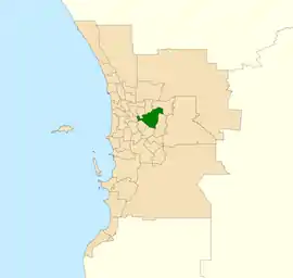 Belmont is bounded by the Swan River to the northwest, the Helena River to the north, the freight railway to the east, Welshpool Road to the south and Orrong Road to the southwest. Its boundaries include the suburbs of Ascot, Belmont, Cloverdale, Kewdale, Redcliffe, Rivervale, South Guildford and Welshpool, as well as Perth Airport, and parts of Burswood and Hazelmere.[4]