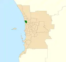 The district boundaries were redistributed in 2019 and saw the suburbs of North Beach and Gwelup being removed while the suburb of Sorrento was added.[1]