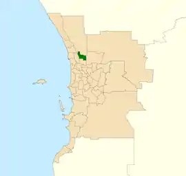 The district was created for the 2021 state election, essentially as a new name for the district of Girrawheen.[1][2] It is a notional fairly safe Labor seat.
