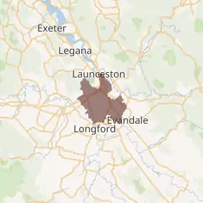 Map showing the electoral division of Launceston, as of the 2017 periodic review.[1] | |