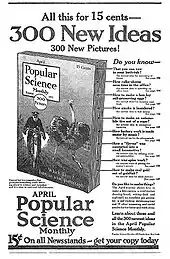 - "September's Harvest Of Important Books". The New York Times. August 29, 1915. p. BR312. "The Popular Science Monthly has been bought by the Modern Publishing Company of New York City and consolidated with The World's Advance, formerly Popular Electricity. The two magazines will be merged under the title of The Popular Science Monthly, beginning with the November issue. Waldemar Kaembffert for a longtime editor of the monthly will continue in that position."