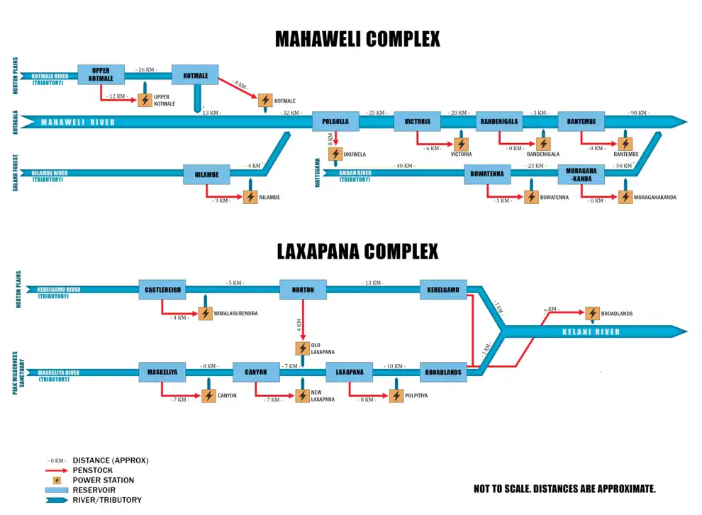The two hydroelectric complexes of Sri Lanka.