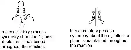 Correlation diagrams, which connect the molecular orbitals of the reactant to those of the product having the same symmetry, can then be constructed for the two processes.[3]