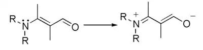 The term electromeric effect is no longer used in standard texts and is considered as obsolete.[1] The concepts implied by the terms electromeric effect and mesomeric effect are absorbed in the term resonance effect.[2] This effect can be represented using curved arrows which symbolize the electron shift, as in the diagram below: