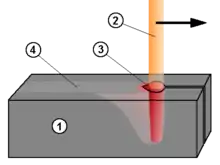 - A defocused beam does not penetrate, and the material at low welding speeds is heated only by conduction of the heat from the surface, producing a hemispherical melted zone.