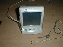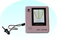 An electronic apex locator is an electronic device used in endodontics determine the position of the apical constriction and thus determine the length of the root canal space. The apex of the root has a specific resistance to electrical current, and this is measured using a pair of electrodes typically hooked into the lip and attached to an endodontic file.