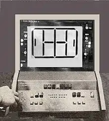 The first successful public demonstration of a computerized device to make automated line calls at a professional tennis tournament was in 1974. (The Electroline-control computer pictured at the right). This original tennis electronic line judge device, invented by Geoffrey Grant, an avid tennis player, and Robert Nicks, an electronics engineer, was used in the championship finals of both the Men's World Championship Tennis in Dallas in May, 1974 and the Ladies' Virginia Slims tour in Los Angeles.[1][2] Although the Grant-Nicks pressure sensor based system was given rave reviews in the press at its introduction[3] and was issued with a USPTO patent,[4] the product was never commercialized.