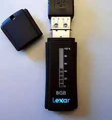 Some devices, like USB flash drives, have used electronic paper to display status information, such as available storage space.[42] Once the image on the electronic paper has been set, it requires no power to maintain, so the readout can be seen even when the flash drive is not plugged in.