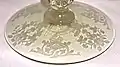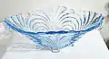 Tableware included plates, bowls, platters, sherbets, salt and pepper shakers, compotes, creamers, sugar bowls, epergnes, mayonnaise bowls, place holders, baskets, candy dishes, cruets, bells, candlesticks, cheese stands, bread and butter plates, baskets, bon bons, jam/jelly jars, tidbit trays, nut dishes, celery dishes, pickle dishes, lamps, cracker jars, oil and vinegar bottles, marmalade jars, and vases.[3]