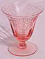 Elegant glass is high quality glassware created in the United States during the Depression Era. It was sold for high prices in department stores and given as wedding gifts.[1] When new, Elegant glass would cost more than its oft-confused counterpart, Depression glass, because it was at least partially handmade, had a cleaner finish, and more vibrant colors. From the 1920s through the 1950s, Elegant glass was an alternative to fine china. Most of the Elegant glassware manufacturers closed by the end of the 1950s, and cheap glassware and imported china took its place.