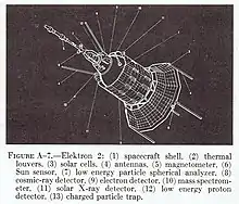 Elektron (Russian: электрон) ('electron'), in American sources sometimes called Electron,[1] was the first Soviet multiple satellite program, comprising two identical pairs of particle physics satellites launched by the Soviet Union in 1964. The four spacecraft simultaneously monitored the lower and upper Van Allen radiation belts and returned a considerable volume of data regarding radiation in space and atmospheric conditions to an altitude of more than 58,000 kilometres (36,000 mi) above the Earth. Two of the four launched satellites are still in orbit as of 2020, the other two having reentered.