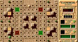 Elemental is an action-strategy video game written by Erick Dupuis and published by Lankhor in 1988. The player controls a green ball which freely evolves on the stage and which is pursued by two other balls. The first one is invincible and the player can only evade it using the environment to put some distance between them or by staying on one of the four "safe point" of the stage. The other follows the same rules, but it can also be stuck in holes present in the stage while following the green ball. In this case, another one will appear and continue following the player.