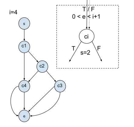A test case graph illustrates all the necessary independent paths (test cases) to cover all isolated conditions. Conditions are represented by nodes and condition values (situations) by edges. All program situations are addressed by an edge. Each situation is connected to one preceding and successive condition. Test cases might overlap due to isolated conditions.