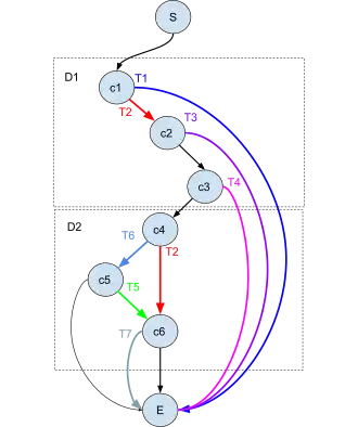 In the example test case graph, all test cases and their isolated conditions are marked by colors and the remaining paths are implicitly passed.