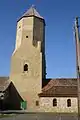 The 13th century bergfried of Rosenberg Fortress had a narrow staircase tower added in 1571 on the south side. Until then the tower only had an elevated entrance about 12 metres above the ground