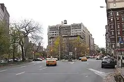 Meanwhile, the avenue's West End Avenue section was originally created in the 1880s as the northern extension of Eleventh Avenue, and was intended to be a commercial street serving the residents of the mansions to be constructed along Riverside Drive.[10] When West End Avenue was named in the 1880s, the Upper West Side was fairly sparsely populated, and that upper portion of the avenue, subsequently, was called the "West End" because of its separation from the core of the city. Seeking to distinguish the area from the factories and tenements below 59th Street, a group of real estate developers renamed the northern portions of the West Side's avenues.[11]