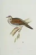 Elizabeth was born on 18 July 1804 in[1] Ramsgate, England to a military family. Elizabeth likely underwent training in drawing and botany from an early age as was typical of a woman of her class in Victorian England. She met John Gould through her brother, Charles Coxen, who was also an taxidermist.[2] She married John Gould in January 1829, both 24 years old. Elizabeth began her professional work-life by producing ornithological drawings intended to supplement John's ornithological writing in letters to colleagues. John encouraged her to learn lithography and asked his collaborator Edward Lear to teach her. The extent of Lear's direct influence on the artist is uncertain, but they moved in a circle of artists and natural historians working on similar publications. All of this group were enthused with the depiction and scientific illustration of the unknown animals found on European expeditions, especially the novelties in English collections of Australian birds and mammals.[3] Once proficient with the art form, she created illustrations from John's more rudimentary drawings.[4] She designed, lithographed, and painted more than 650 plates[2] which appeared in:
