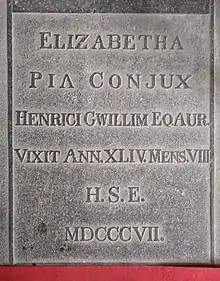 Elizabeth married Henry Gwillim (1759 – September 22, 1837) on May 27, 1784, in London at St. Bride’s Church on Fleet Street. Henry was a lawyer and judge whose family was also from Hereford. Information on their children is inconclusive: London archives document the burial of an infant on January 13, 1786, also named Elizabeth, who was born March 31, 1785 and baptized June 20, 1785 at St. Bride's.[2] Other sources familiar with Gwillim’s life note another daughter named Ann, baptized June 10, 1787, and a son Henry, baptized October 11, 1789.[3] These two children were born in Sarnesfield in Hereford[4] and Henry's burial is recorded in nearby Kinnersley on February 28, 1790.[5] Elizabeth describes herself as childless in a letter to her sister Hetty written in 1806 from Madras,[6] and none of her preceding letters mention children.