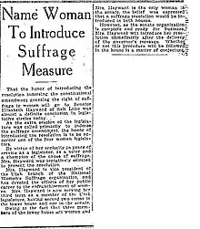 - "Name Woman to Introduce Suffrage Measure". Salt Lake Telegram. September 29, 1919. p. 5. Retrieved 2014-11-24.