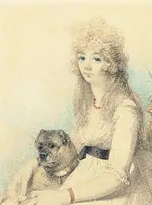 On 26 January 1753, Lady Elizabeth Hamilton was born as the eldest child of James Hamilton, 6th Duke of Hamilton and his wife Elizabeth Gunning.[1] Two younger brothers followed, and her father died in early 1758. The Duchess of Hamilton, considered one of the most beautiful women of the day, remarried in 1759 to John Campbell, Marquess of Lorne (later Duke of Argyll). This marriage gave Lady Elizabeth three younger half-brothers and two younger half-sisters.[2]