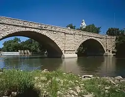 The town is known for its bridge over the Turkey River, said to be the largest stone arch bridge west of the Mississippi River. It, and many of the local buildings, are made from locally quarried sandstone. The town's grocery store, Wilke's, is the oldest continuously operated grocery store west of the Mississippi, as well. Elkader also features a renovated Victorian-era opera house, and the Turkey River Mall, a 29-room hotel converted into antique stores.