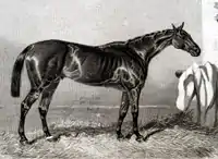 Ellington (1853 – 1870) was a British Thoroughbred racehorse and sire. In a career that lasted from 1855 to 1856 he ran eleven times and won four races. A leading two-year-old in 1855, when his wins included the Champagne Stakes at Doncaster, he won only one of his seven races the following year. That win, however, came in The Derby, where his ability to handle soft ground proved to be decisive. Ellington was retired to stud at the end of his three-year-old season, but had very little impact as a sire.