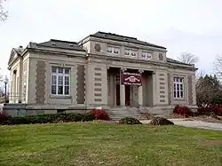 Hall Memorial Library, a Neo-Classical Revival building built of brick and limestone, is one of the largest buildings in the historic district. The historic district also includes two churches.[2]