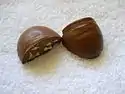 - Pecan Egg consists of a nougat center, covered in caramel and chopped pecans.[7]