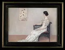 Born in Waco, Texas, Lowden spent her youth there,[1] studying with Eleanor T. Wragg at Baylor University,[2] before moving to New York City, where she undertook further lessons with Lucia Fairchild Fuller and Elsie Dodge Pattee. Her works were exhibited in that city, in Atlanta, and in Washington, D.C. as well as in her native state, where she was included in the Texas Centennial Exposition of 1936;[1][3] she also showed her work at a variety of other venues, presenting a portrait at the Panama-Pacific International Exposition in 1915.[4] Known particularly for portraiture, she depicted members of such prominent Houston families as the Blaffers and Hobbys, as well as noted novelist Ellen Glasgow. Lowdon also produced a variety of interior and genre scenes. She died in Fort Worth,[1] and is buried in Abilene, in the Abilene Municipal Cemetery.[5]