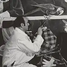 Emanuel Glicenstein was born in Rome on 23 September 1897. His father Henryk Glicenstein was a sculptor and he was living in Rome with his wife Helena (born Hirszenberg) when Emanuel was born.[1] His father obtained Italian citizenship and adopted the name Enrico. Emanuel was brought up in Italy, Switzerland, Germany, England and Poland.[2] in 1926 Emanuel and his father sailed for New York. They briefly visited Chicago. Glicenstein's sister, Beatrice, and mother joined them in New York years later. Romano changed his name when he was in America and some have erroneously thought this was to avoid Jewish discrimination. However Romano changed his name in order that he could create his own success and to avoid being accused of exploiting his father's fame.[3] In 1936 Romano was working for the Federal Art Project creating murals (see picture).[4] During and immediately after World War II, Romano created a series of allegorical works depicting graphic holocaust images that were held closely by the family after his passing. One of these works is in the Florida Holocaust Museum in St. Petersburg Florida.