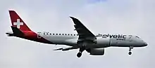 On 31 October 2019, Helvetic Airways became the fourth airline to take delivery of an E2 aircraft and the third (after Widerøe and Air Astana) to receive an E190-E2 aircraft, configured in a single-class layout with 110 seats.[50] On 1 November 2019, Helvetic Airways made their first revenue flight with the E190-E2. The inaugural flight, LX850, was a 336 nmi (623 km), 95-minute leg from Zürich to Bremen.[51]
