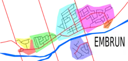 In the map to the right, the neighbourhoods of Embrun are colour-coded. Below is a legend as to what neighbourhood each colour represents.