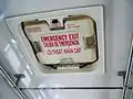 Public bus top emergency exit for when the sides are blocked, in English, Spanish & Vietnamese.