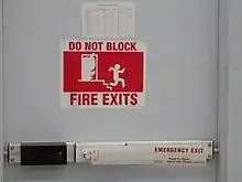The UK Health and Safety (Safety Signs and Signals) Regulations 1996 define a fire safety sign as an illuminated sign or acoustic signal that provides information on escape routes and emergency exits.[3] Well-designed emergency exit signs are necessary for emergency exits to be effective.