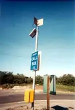 Emergency telephones are commonly found alongside major roads throughout the world. In the United Kingdom, orange "SOS" call boxes are spaced every 1.6 kilometres (1 mi) on all motorways as well as some major "A" roads, with roadside markers indicating the nearest phone. Emergency telephones were installed every 0.25 miles (400 m) on all limited-access highways ("Freeways") throughout Southern California in the United States beginning in the 1970s. In Melbourne, Australia, emergency telephones were introduced on metropolitan freeways in 1976, originally on the Tullamarine, South Eastern and Lower Yarra (West Gate) Freeways.[2] On Italian "Autostrade" ("Motorways"), "SOS" emergency phones, generally coloured in yellow, are found spaced every 2 kilometres (1.2 mi).