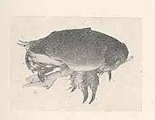 Emerita talpoida, known generally as the Atlantic mole crab or Atlantic sand crab, is a species of mole crab in the family Hippidae. It is found in the western Atlantic Ocean and Mexico along the shoreline.[1][2][3]