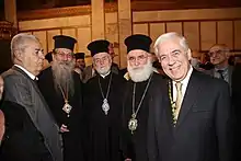He is Archon, Teacher of the Nation, of the Greek Orthodox Patriarchate of Alexandria and All Africa. He serves as President of the Hellenic Society of Linguistic Heritage and the Theocaris Foundation of the Academy of Athens[6]