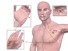 Proponents of EFT and other similar treatments believe that tapping/stimulating acupuncture points provide the basis for significant improvement in psychological problems.[10] However, the theory and mechanisms underlying the supposed effectiveness of EFT have "no evidentiary support" "in the entire history of the sciences of biology, anatomy, physiology, neurology, physics, or psychology." Researchers have described the theoretical model for EFT as "frankly bizarre" and "pseudoscientific."[5] One review noted that one of the highest quality studies found no evidence that the location of tapping points made any difference, and attributed effects to well-known psychological mechanisms, including distraction and breathing therapy.[5][11]