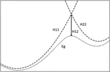 Where most methods for reaction free-energy calculations require at least some part of the modeled system to be treated using quantum mechanics, EVB uses a calibrated Hamiltonian to approximate the potential energy surface of a reaction. For a simple 1 step reaction that typically means that a reaction is modeled using 2 states. These states are valence bond descriptions of the reactants and products of the reaction. The function that gives the ground energy then becomes: