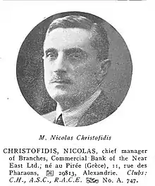 The Commercial Bank of Greece (CBG) was established in London by the Greek banker Gregorios Empedocles (Γρηγόριος Εμπεδοκλής in Greek) in 1907 and two years later listed on the stock exchange. In 1922, CBG established Commercial Bank of the Near East (CBNE) in London with CBG as a major shareholder and with the banker Nicolas Christofides as chief manager. The latter expanded CBG's international operations further by opening a first branch of the Commercial Bank of the Near East in Constantinople in 1922, a second one in Alexandria in 1925, and subsequently another in Cairo. Nicolas Christofides, who settled in Alexandria in the 1920s-30s, managed the Turkish and Egyptian branches of the CBNE until the 1960s.